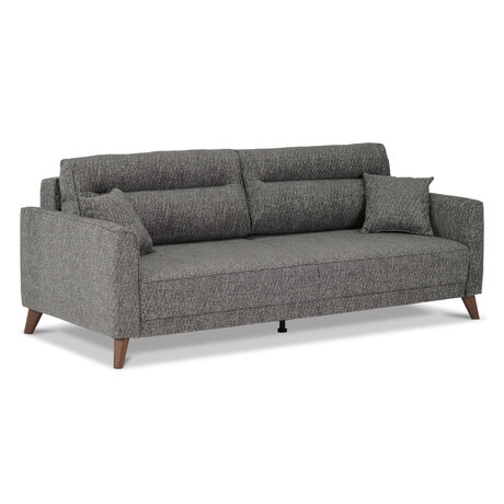 - Диван декорирован опорами из пластика с покрытием под текстуру древесины (орех) высотой 14 см. Высокие опоры визуально облегчают конструкцию дивана и открывают доступ к уборке пространства под ним.