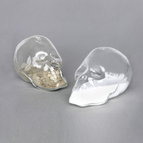 В наборе солонка и перечница в виде черепов.